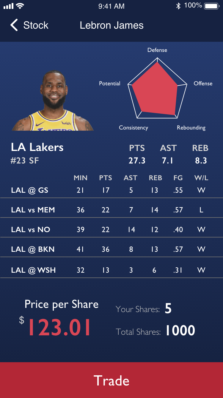 Everybody on our team were huge NBA fans so we knew from the start that we wanted to make a basketball-related app. The inspiration for the stock trading concept game from the explosion of sports betting worldwide in the last few years and the recent legalization of sports betting in the US. One of my groupmates interned in the NBA over the summer and shared some insider secrets that the NBA was interested in creating an app as an extension of basketball gambling. We figured that if our app was successful, we could pitch it to the league. So we thought, “Why not give it a shot?”