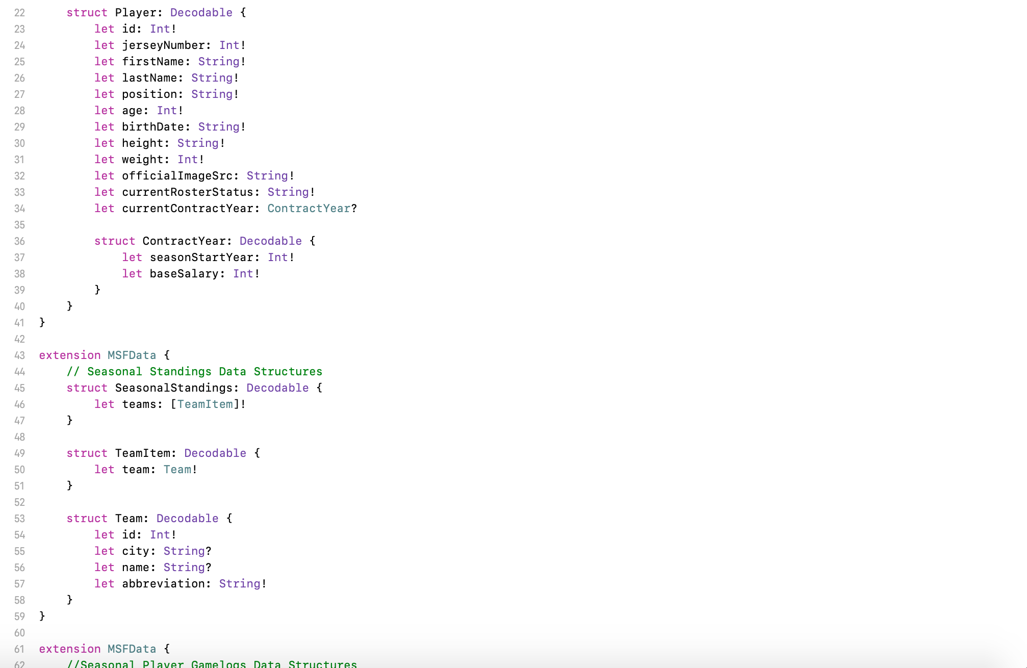 The code for pulling player data, such as their name, position, team, and a bunch of other stuff. It can get really specific.