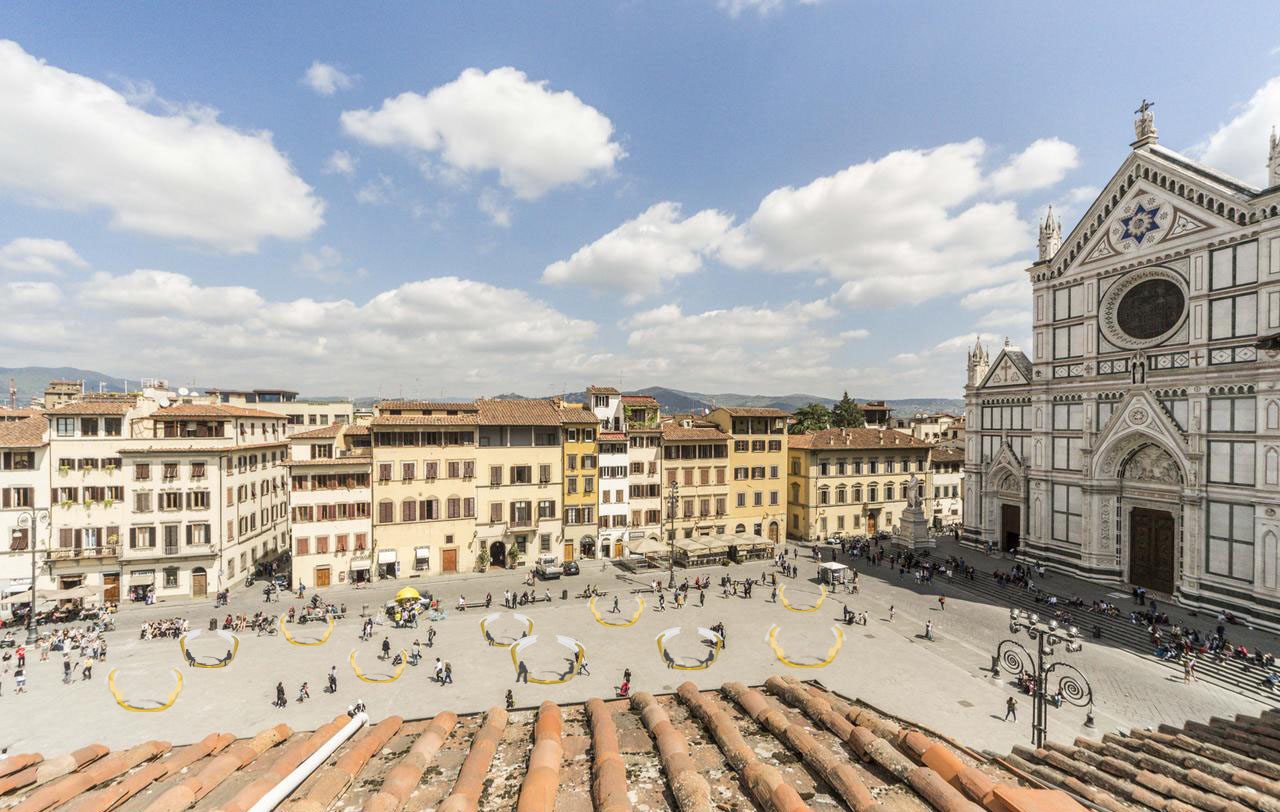When dispersed in the plazza, they would be able to break up the normal movement pattern of people. These could be randomly dispersed or follow a pattern like rows which would change how the user interacts with the space.